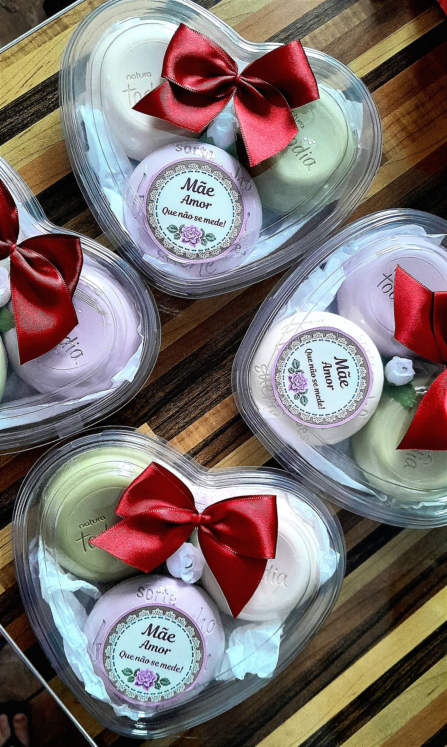 No coração de acetato com sabonetes sortidos natura tododia com 3un 90g cada